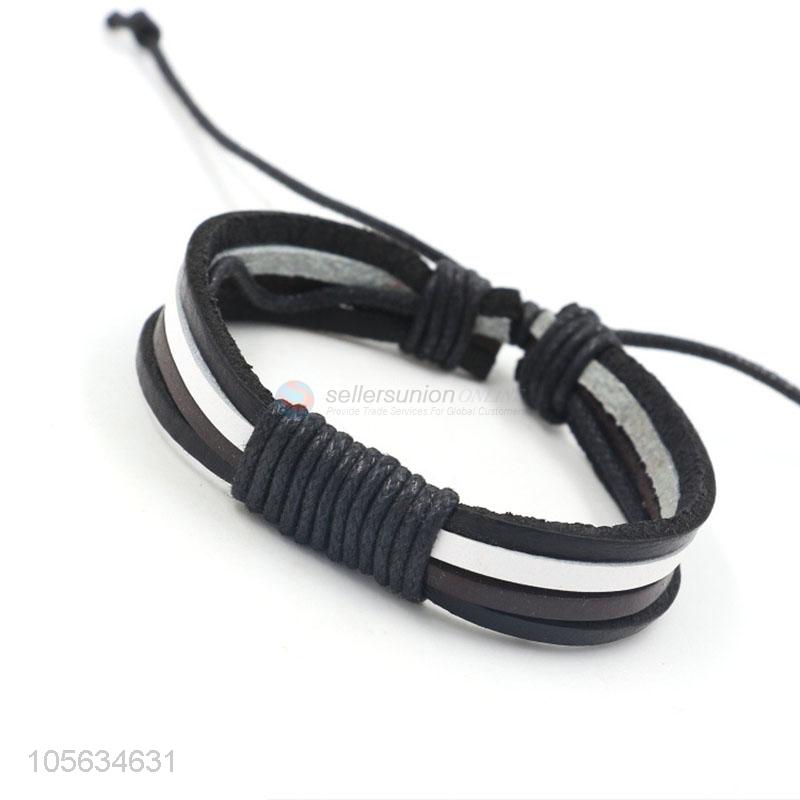 High sales custom mulitier mens braided leather bracelet