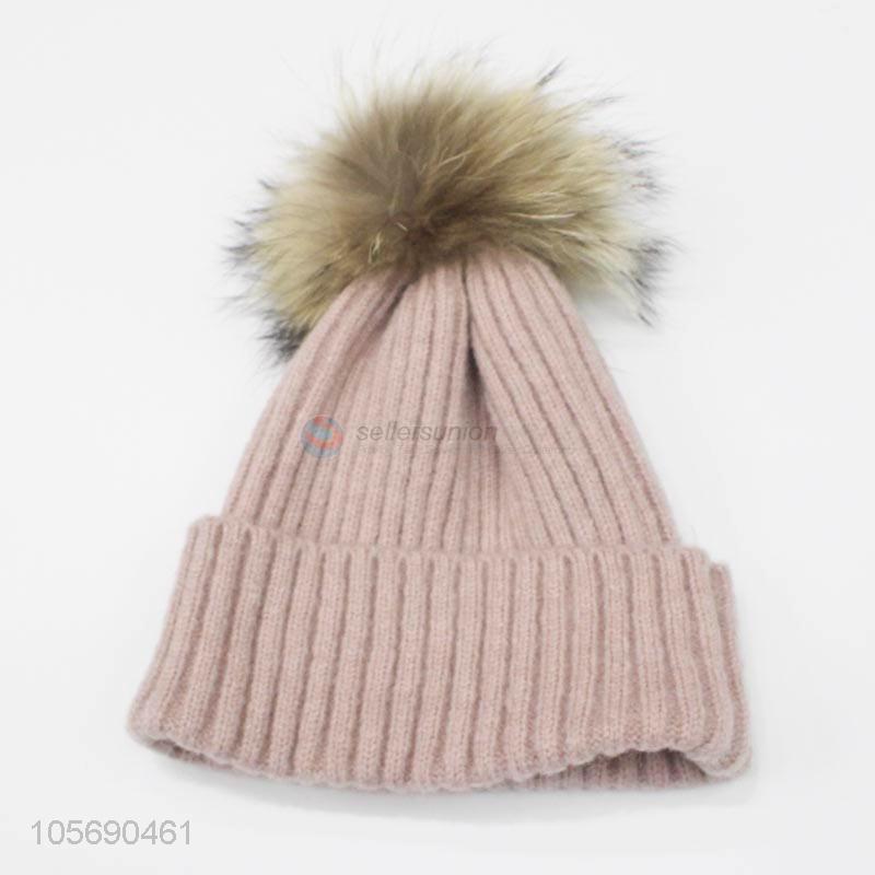 New Advertising Winter Warm Knitting Hat Fur Ball Hats