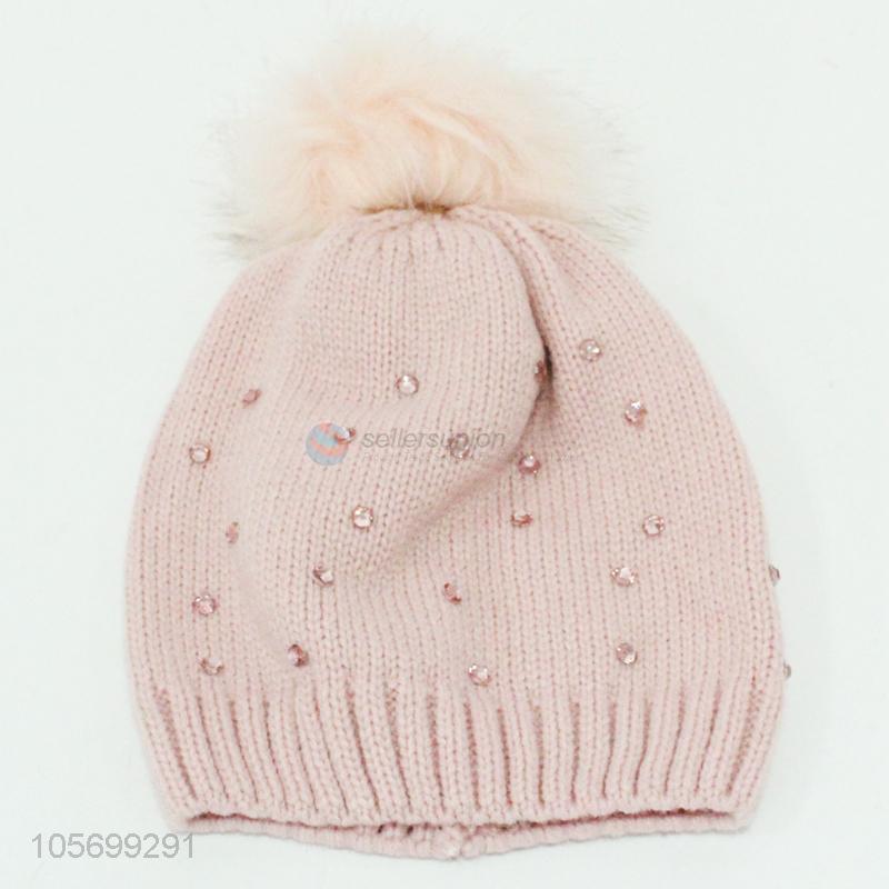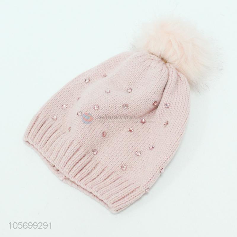 Hot Selling Winter Women Knitted Cap With Pompon Ball