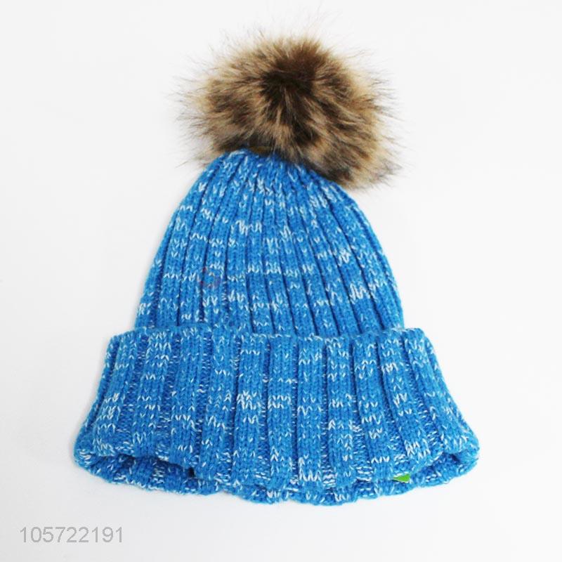 Popular adult acrylic knitted winter hat with hair bulb
