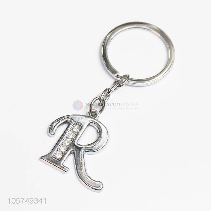 Factory customized letter R shape zinc alloy keyrings metal key chain