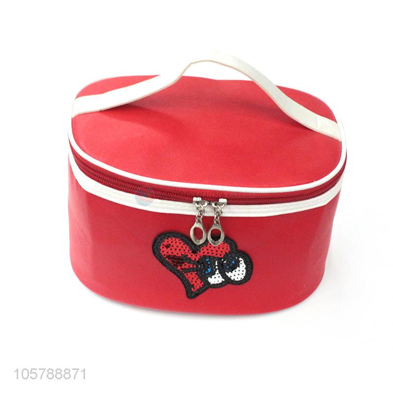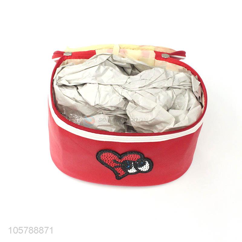 Cute design round printed pu leather zipper cosmetic bag