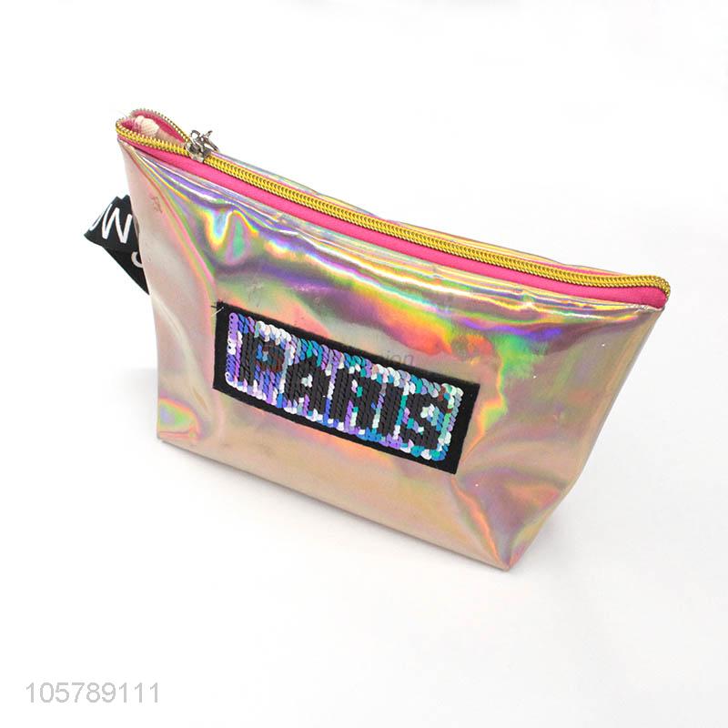 Beautiful style custom letter sequins pu makeup bag beauty bag