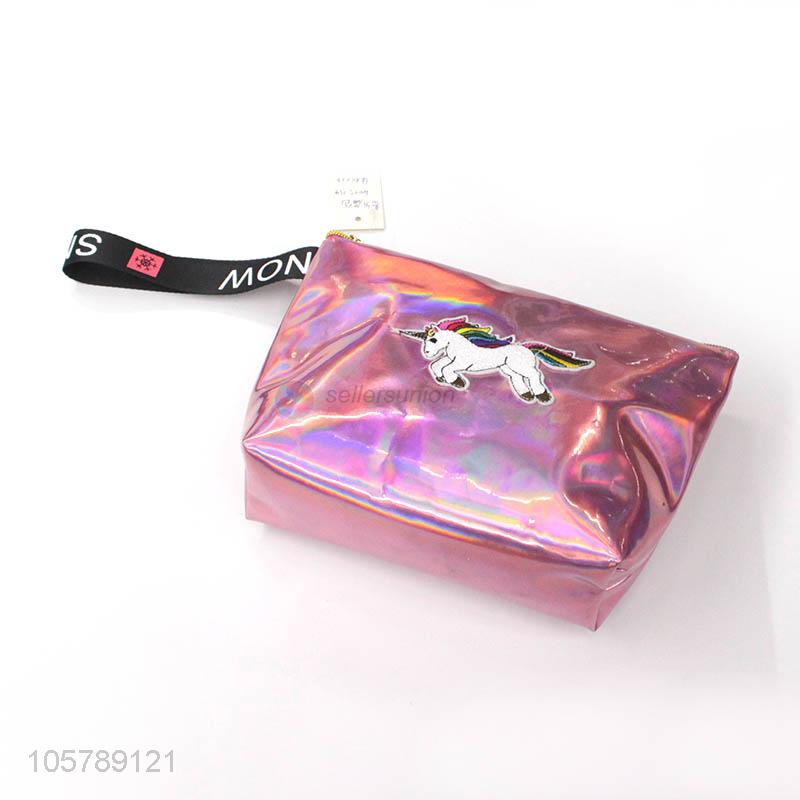 Cute design unicorn pu leather zipper cosmetic bag for promotions