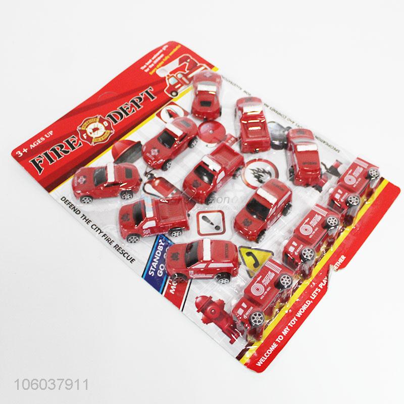 Wholesale kids 12pcs plastic toy fire fighting trucks set