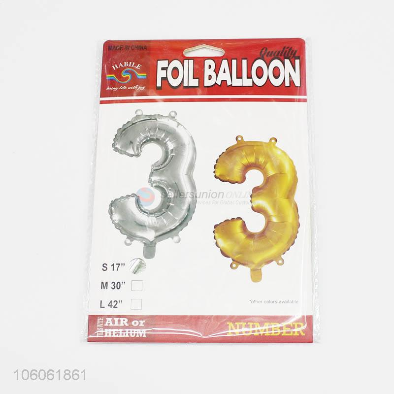 Top Quanlity Kids Toys Baby Shower Number "3" Foil Balloon