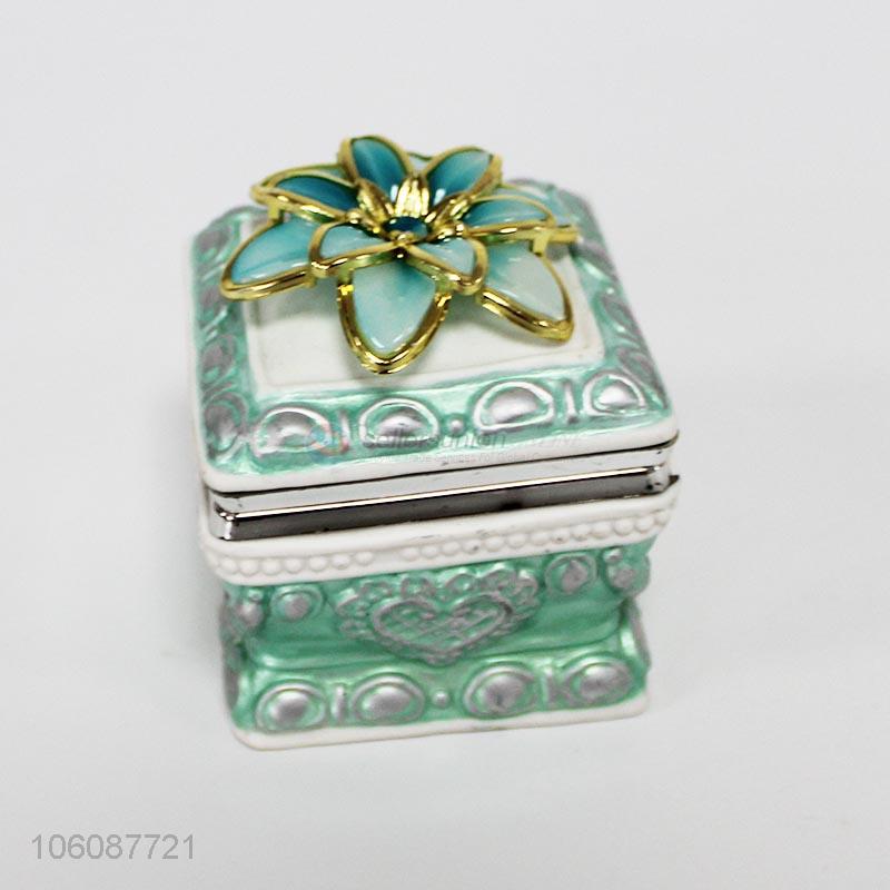 Best Sale Ceramic Square Shape Jewelry Box with Ceramic Flower on The Lid