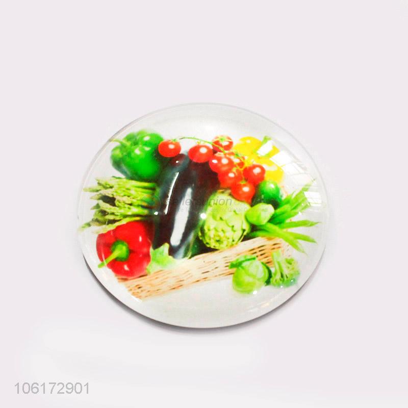 Bottom price vegetables pattern round glass fridge magnet