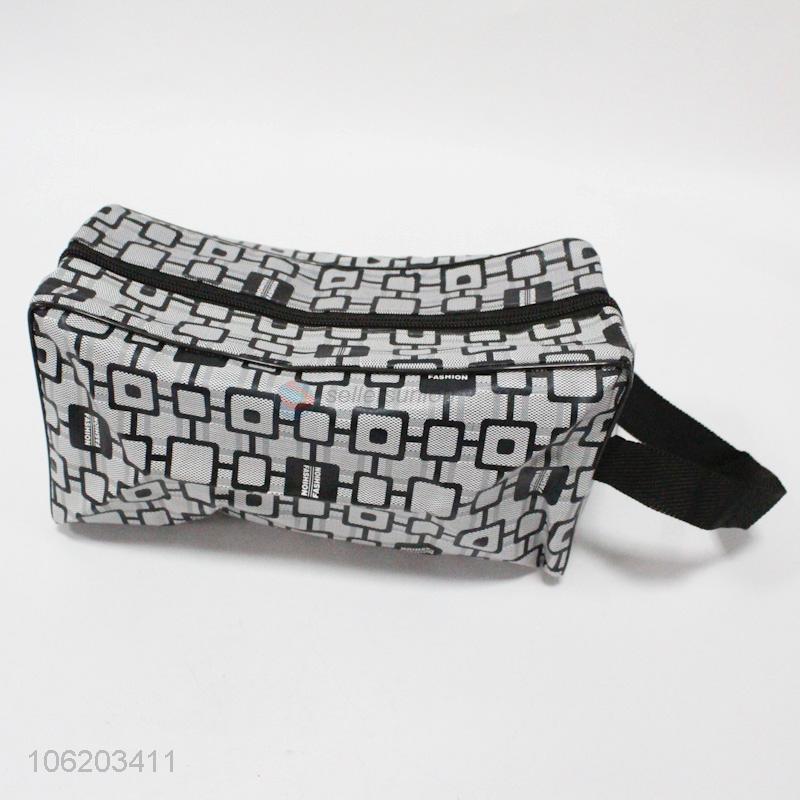Promotional geometric pattern polyester ladies cosmetic bag