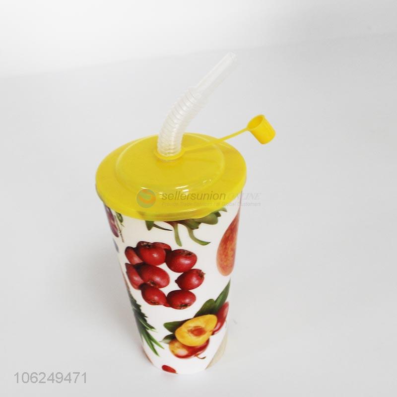 Competitive price fruit printed plastic cup with straw
