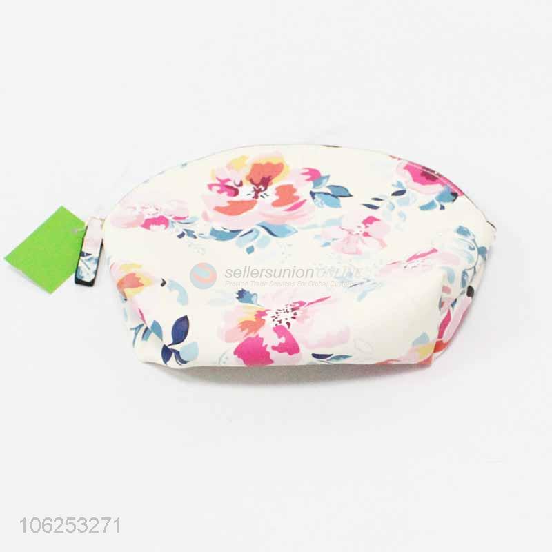 Wholesale delicate flower printed pu makeup bag