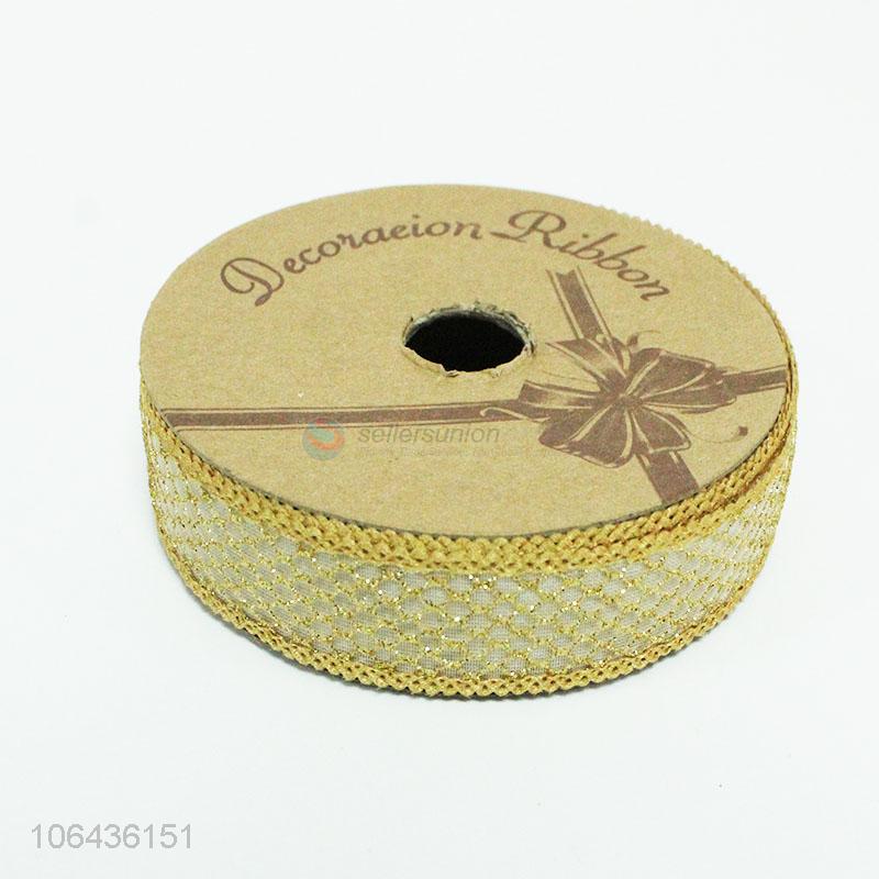 Low price wholesale golden polyester gift ribbon for package