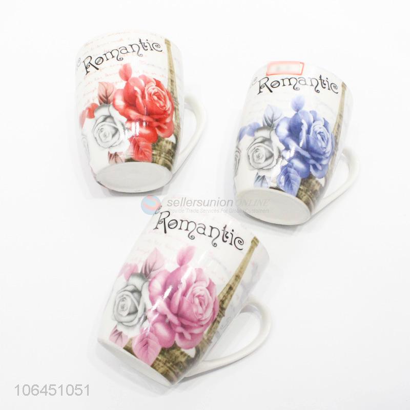 Great sales rose&tower pattern ceramic cup with handle