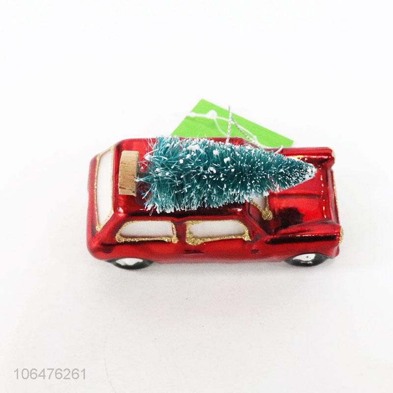 • Cartoon Car Shape Glass Christmas Ornament