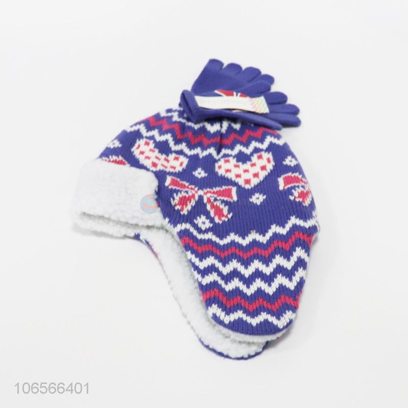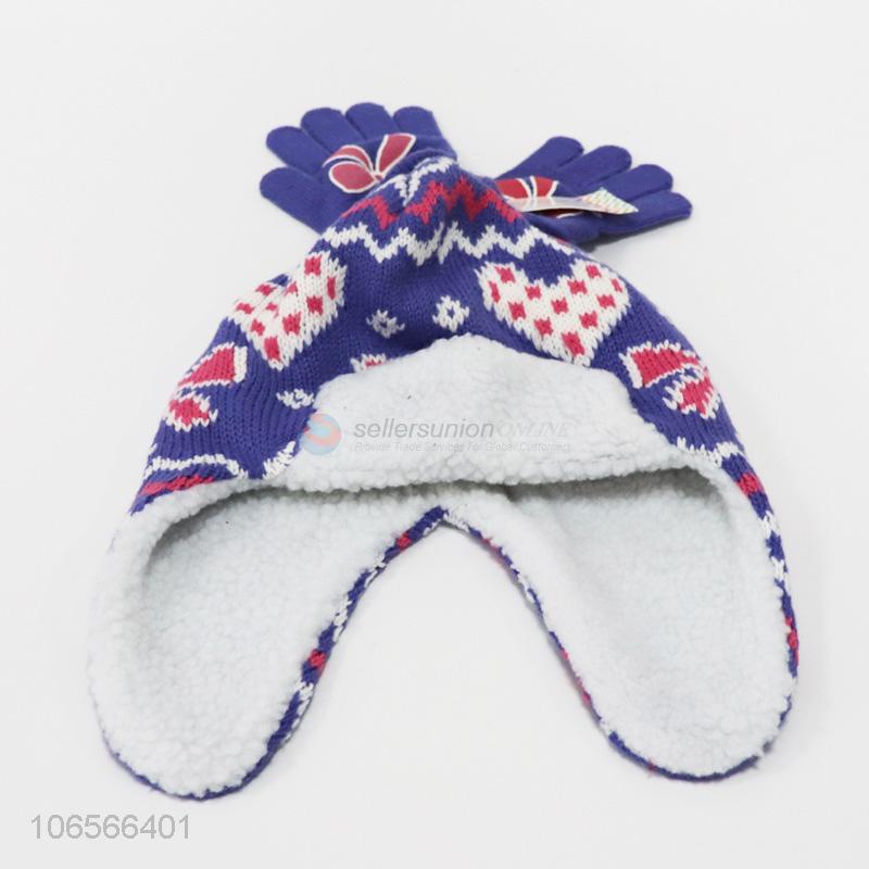 New products kids winter warm acrylic knitting hat and gloves set