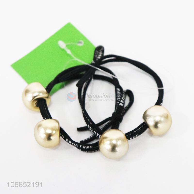 Promotional simple 2pcs round beads hair rings for women