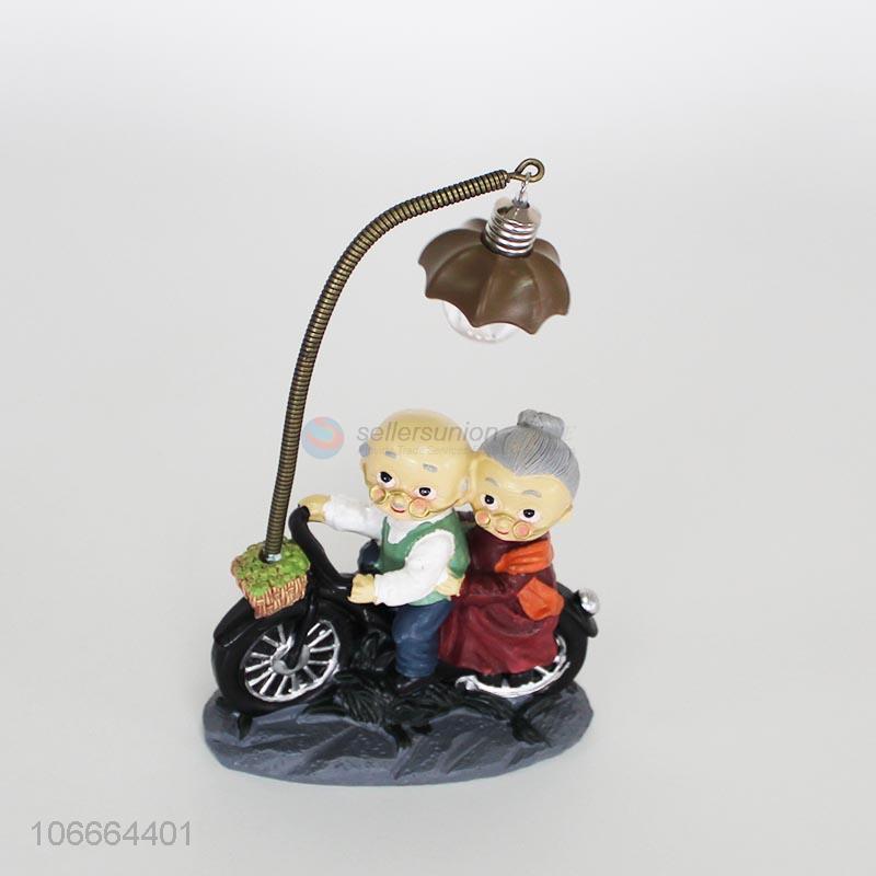 China supplier iron swing old couple statuette with light resin craft