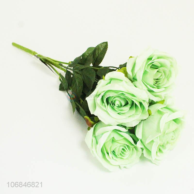 Promotional popular decorative light green 5 heads simulation rose