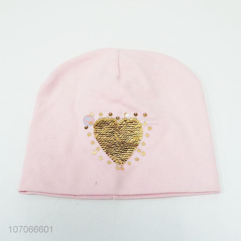 Hot selling exquisite heart sequins hat women winter beanine