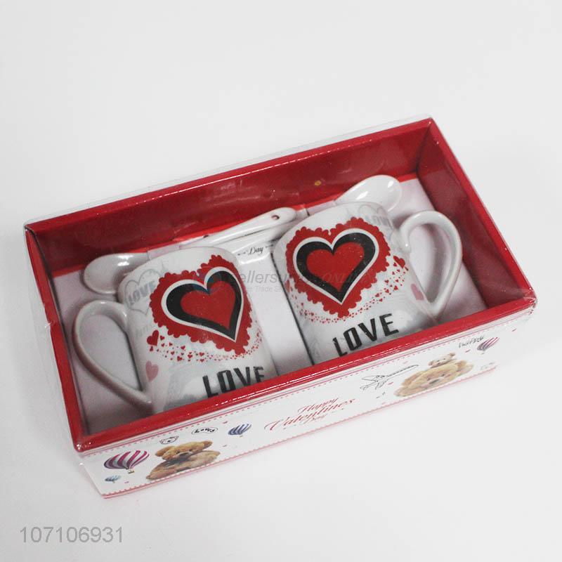 Wholesale valentine's day gift ceramic couple cup with spoon