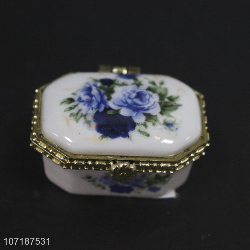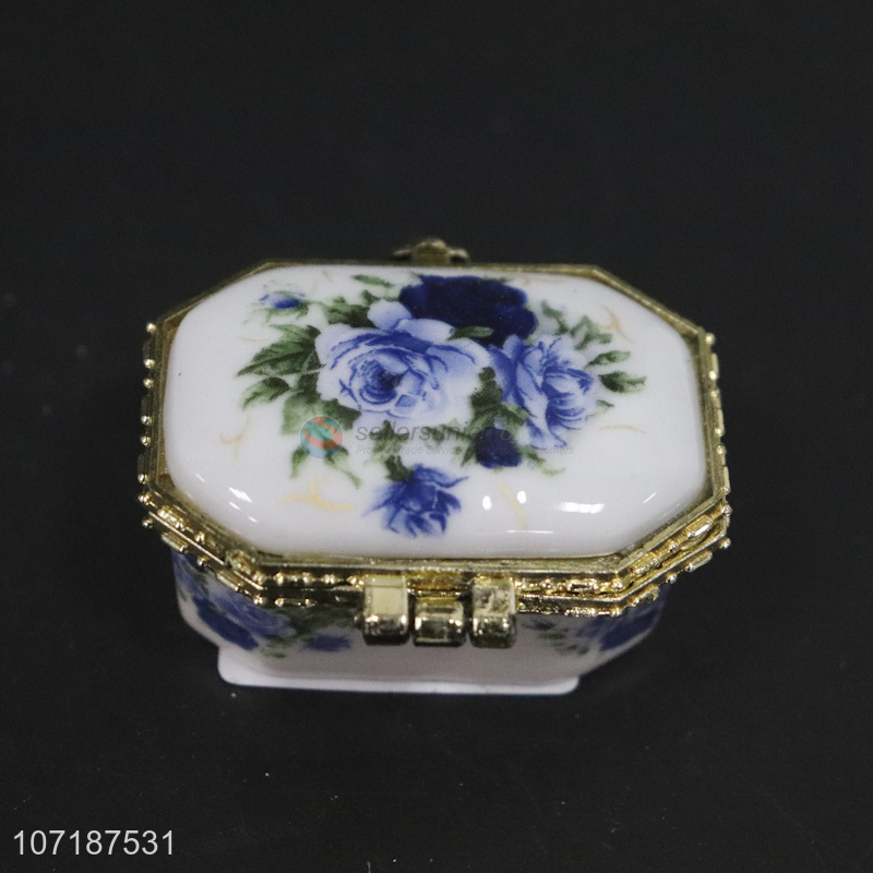 Best sale flowers printing ceramic storage box porcelain jewelry box