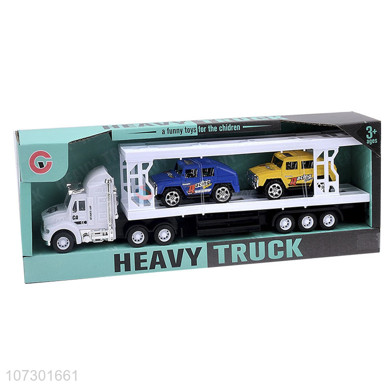 New Style Plastic Inertial Heavy Trailer Toy Truck Carrying Two Cars