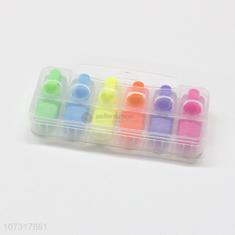 Superior quality 6 colors erasable highlighters plastic fluorescent pen