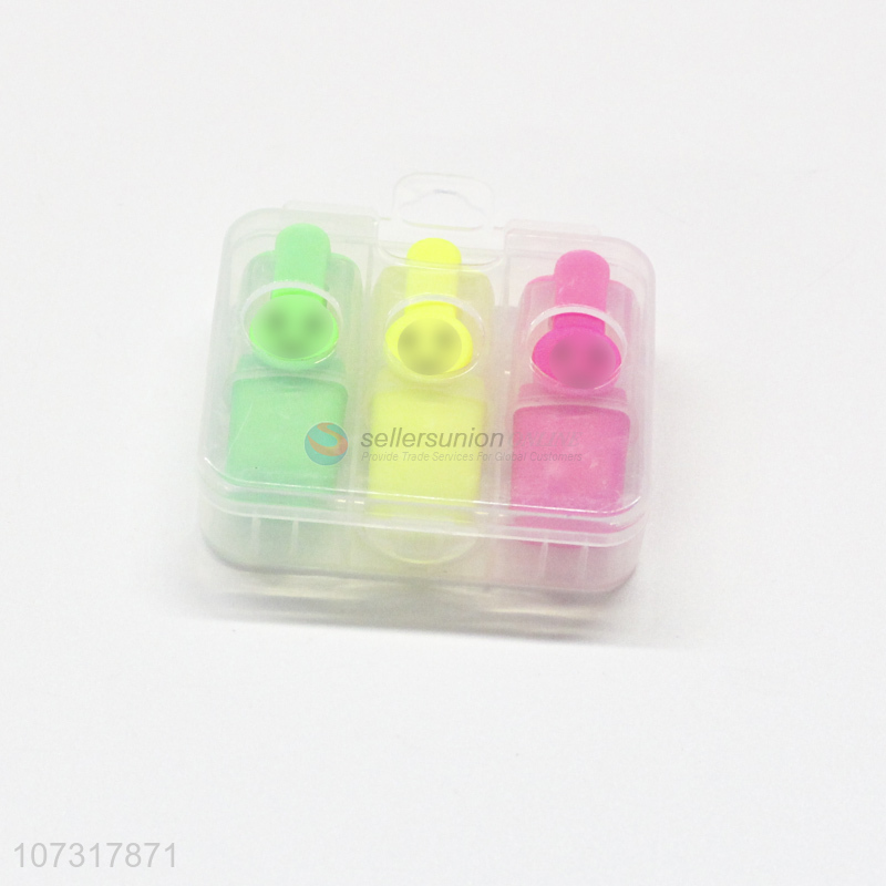 China maker 3pcs fluorescent colors quick-dry plastic highlighter pen