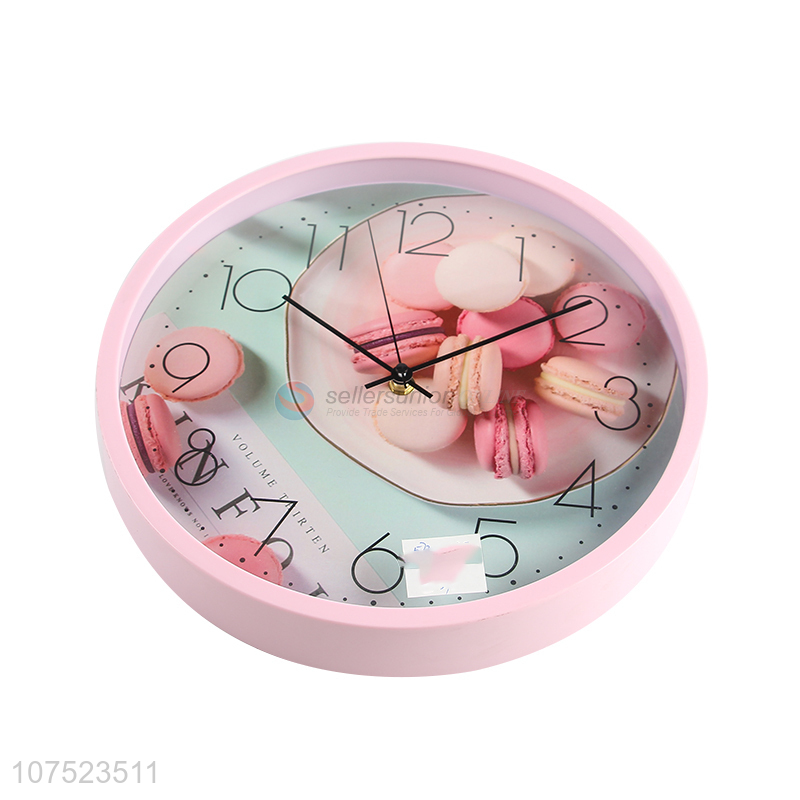 Best selling modern macarons pattern wall clock no-punch bedroom round clock quartz clock