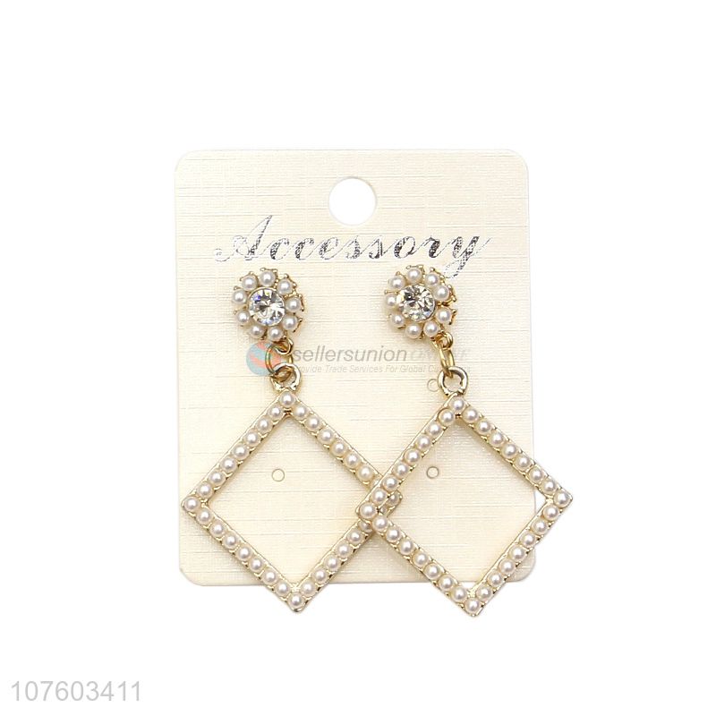 • Hot sale square alloy earring with pearls fashion pearl ear studs
