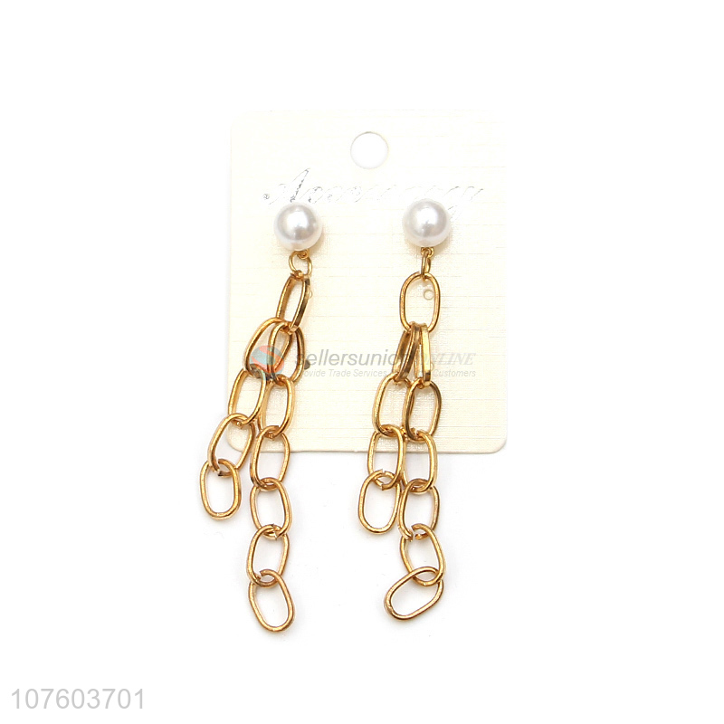 Factory direct sale creative link chain drop earrings with pearl