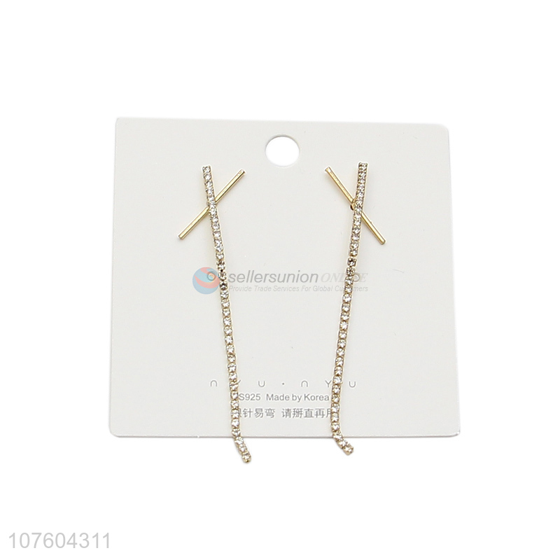 Hot sale long drop earrings with clear rhinestones women jewelry