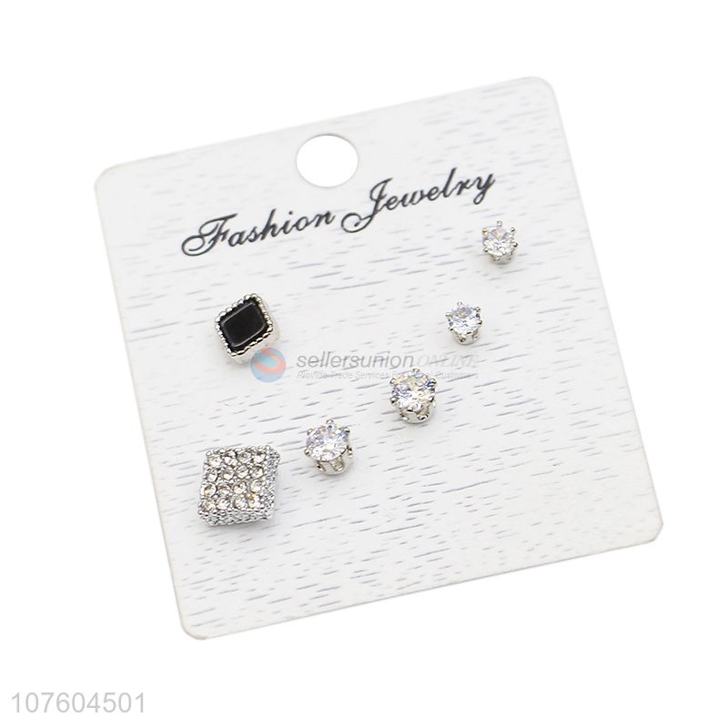New design diamond alloy ear stud set clear rhinestone earring set