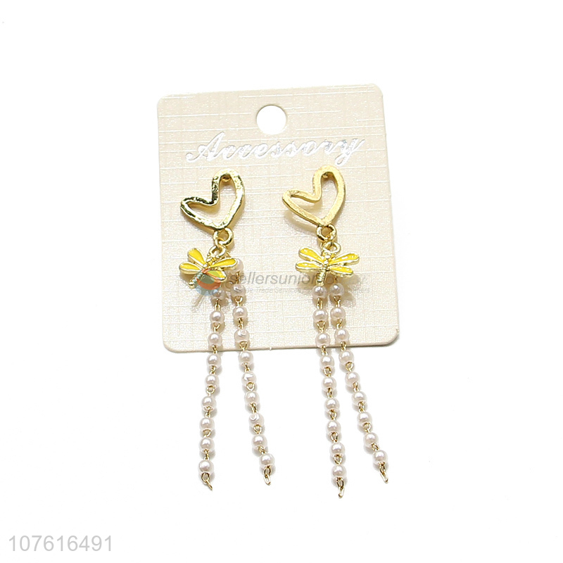 Lovely Heart Design Beads Chain Pendant Earring For Sale
