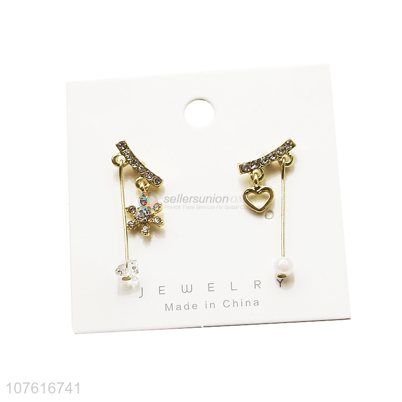 • New product no piercing heart shaped cuff earrings with rhinestones