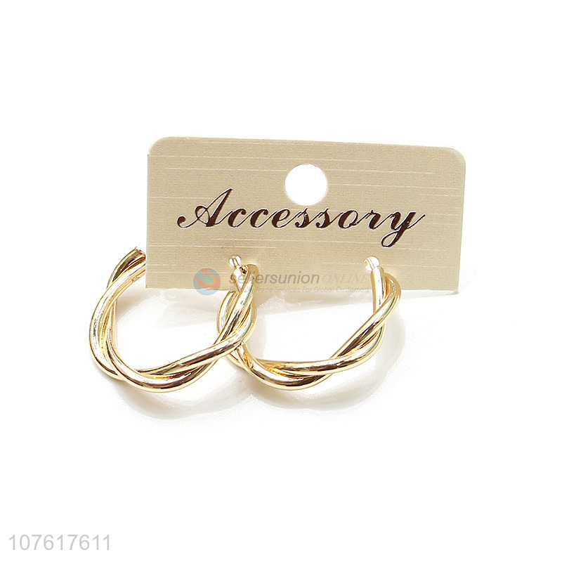 New Design Gold Metal Twist Circle Hoop Earring Fashion Jewelry