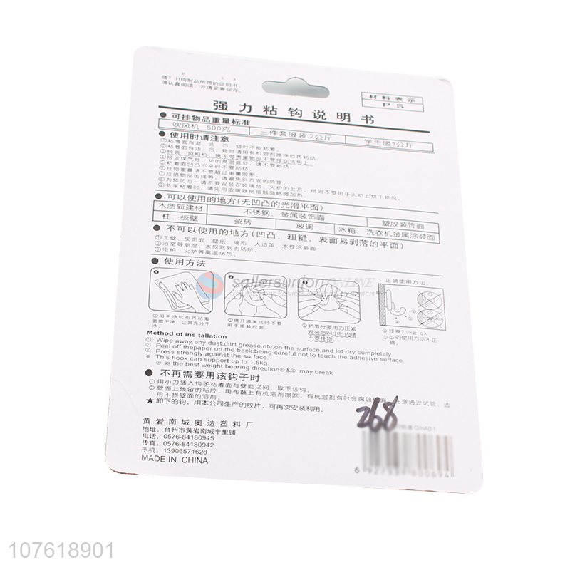 • Good quality 5-hook heavy duty sticky hook wall hanging hook