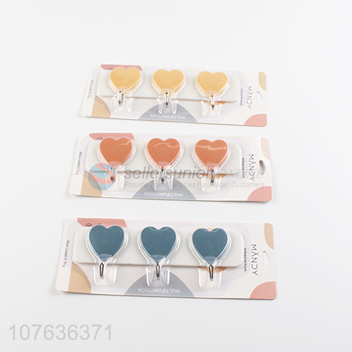 New design heart shape good quality plastic adhesive hooks sticky hooks