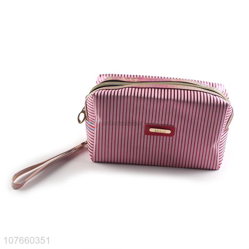 Excellent design pink stripe storage wash bag large volume cosmetic bag