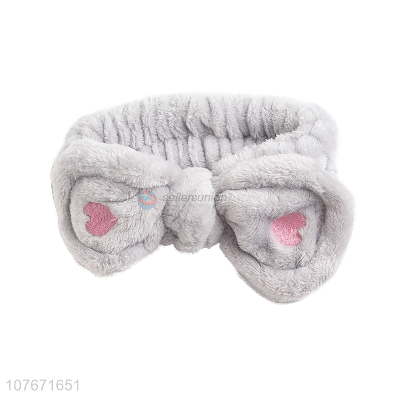 High quality soft flannel makeup headband knotted heart hairband