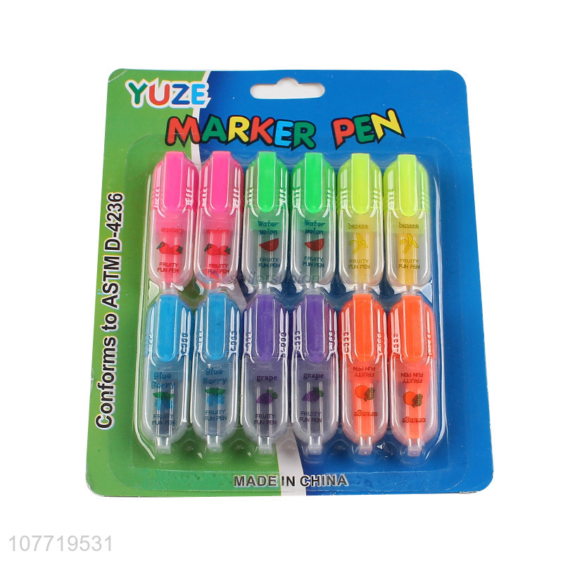 Hot Selling 12 Pieces Fruit Pattern Highlighter Marker Color Marker Pen