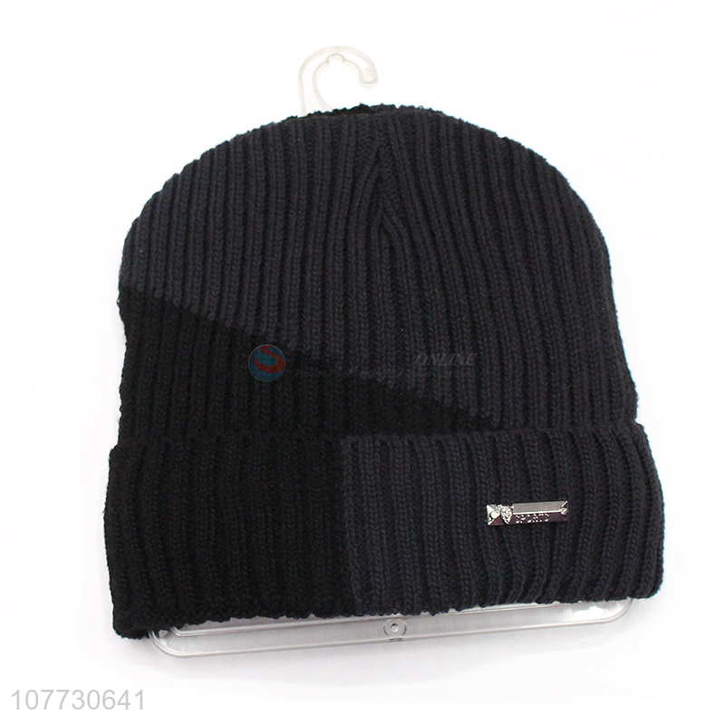 Good sale men winter knitted hat fleece lined sport beanie cap