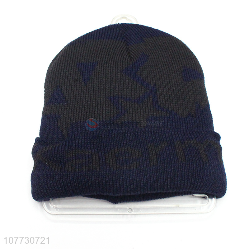 Promotional men outdoor jacquard knitting hat fleece lining beanie cap