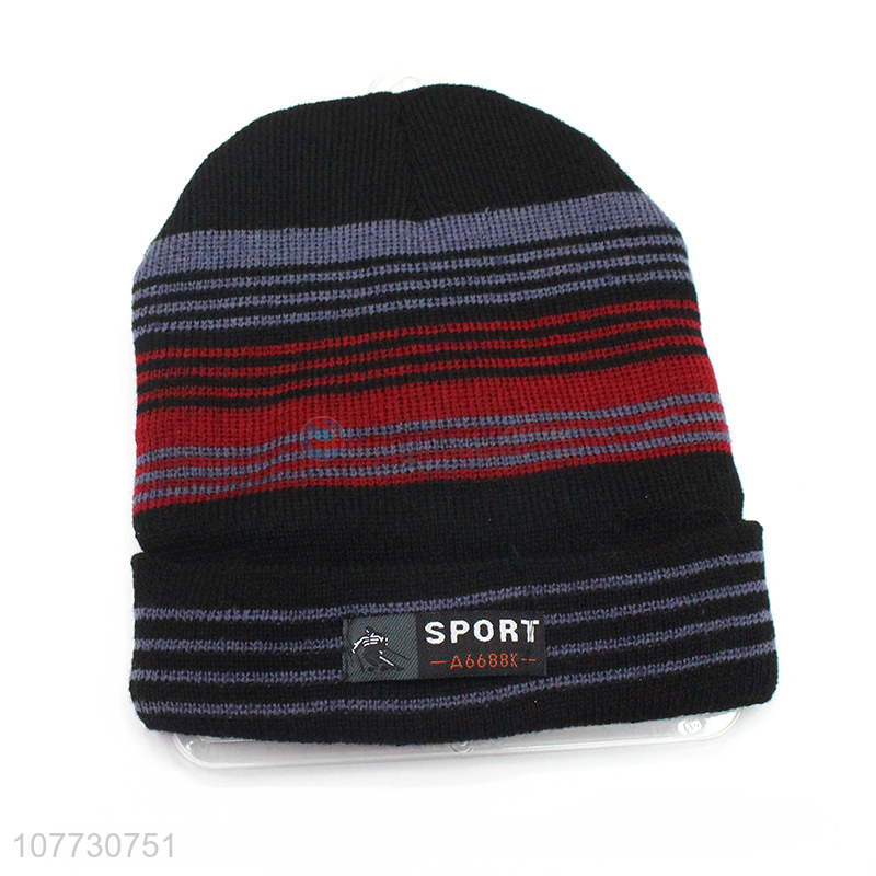 Hot sale men winter sport cap men fleece lining striped beanie hat