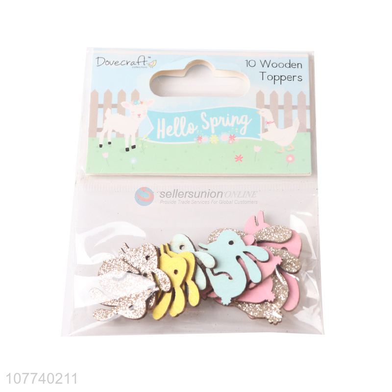 Cartoon children wooden multicolor rabbit decorative piece wooden patch