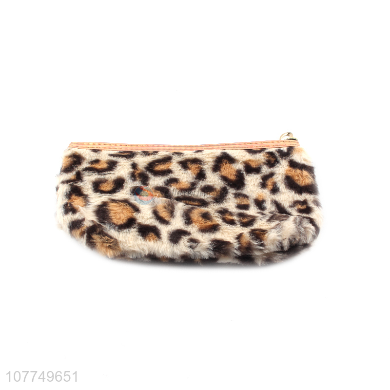 Fashion leopard print long hair portable wash bag cosmetic bag