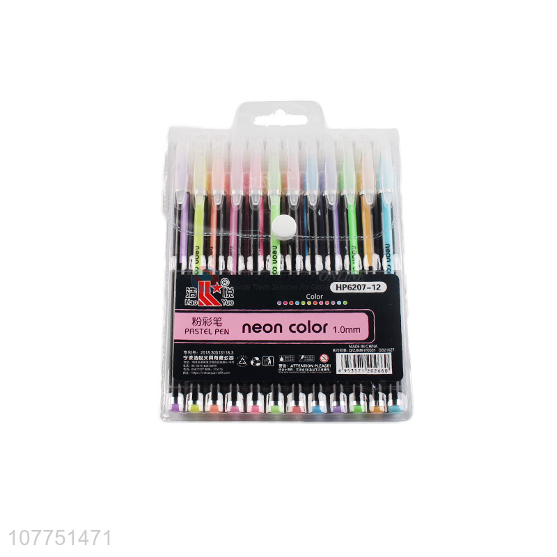 Hot selling 12 neon colors highlighter pastel color marker pen set