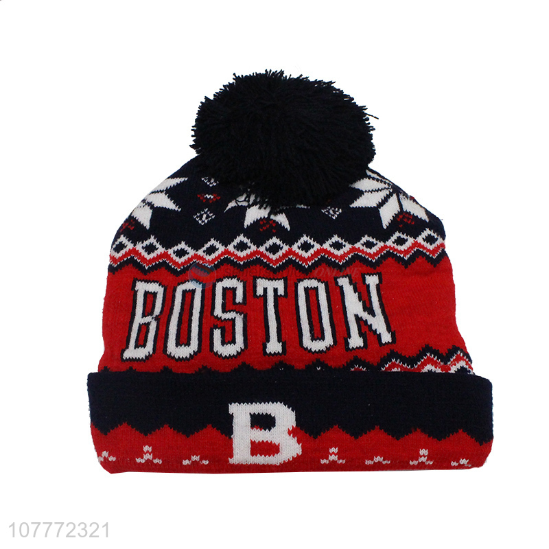 Good quality windproof hat fur ball warm knitted hat