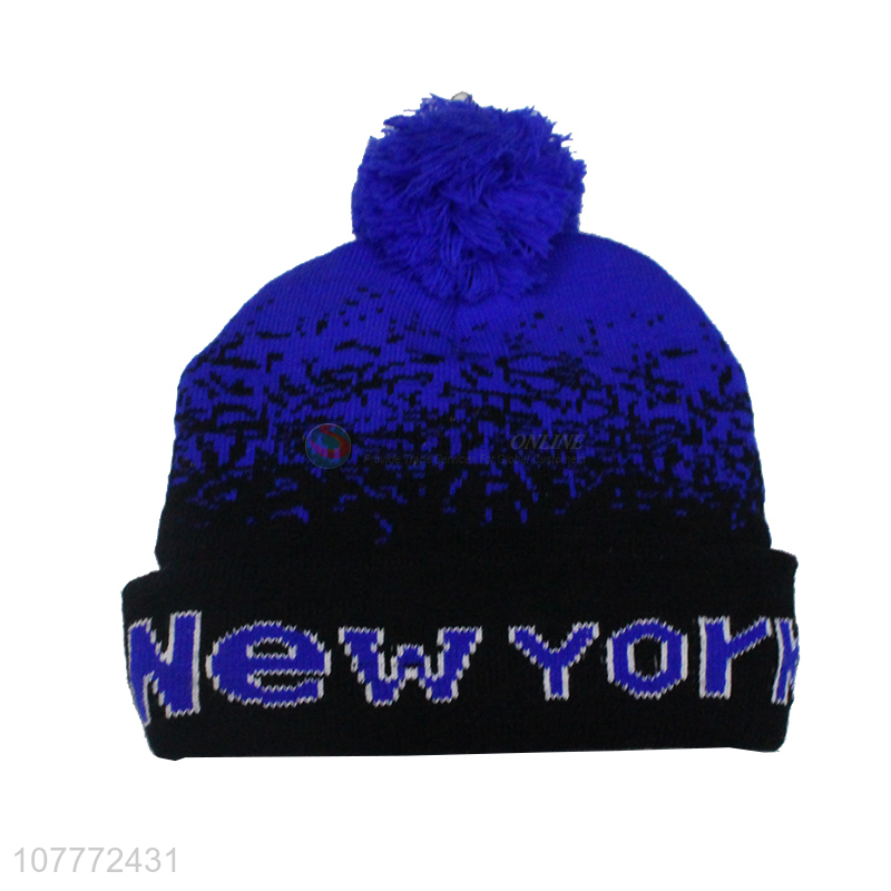Good quality blue windproof knitted hat fur ball warm hat for men