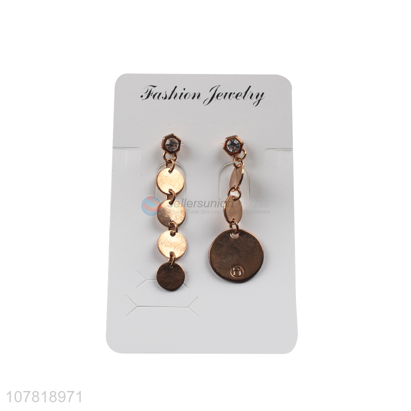 Wholesale gold plating asymmetric metal dangle earrings disc earrings